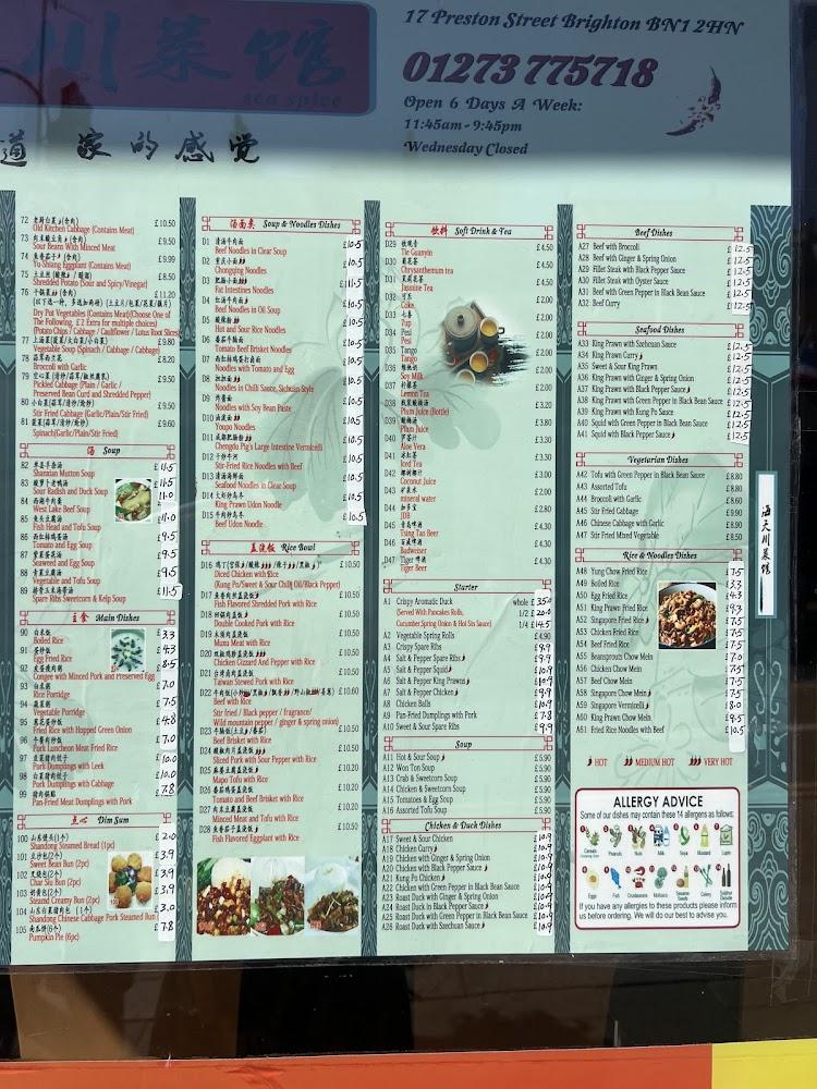 Located at 17 Preston St, Brighton BN1 2HN, Sea Spice greets patrons with a warm, inviting atmosphere and a menu brimming with authentic Szechuan flavors. The restaurant is easily accessible, with wheelchair-friendly facilities, making it suitable for everyone. A welcoming space for families and groups, Sea Spice is also a hit among tourists looking to indulge in genuine Chinese fare. With a robust offering of takeout and delivery options, it's a perfect choice for those on the go. The dedicated staff provides attentive service, ensuring each dining experience is memorable. Open daily, Sea Spice is ready to satisfy cravings during lunch or dinner, and they even accept reservations to accommodate larger gatherings. Regulars rave about the generous portion sizes relative to the price, making it a local favorite in this vibrant coastal city.